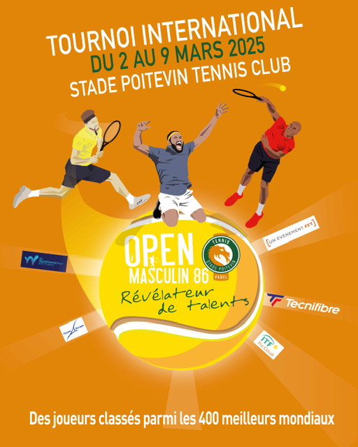 La 36e édition de l’Open Masculin 86 se déroulera du 2 au 9 mars 2025 sur les terrains couverts et chauffés du Stade Poitevin Tennis Club. D’une dotation de 20 000 $, le tournoi international attribue des points comptant pour le classement mondial et attire des joueurs classés aux alentours de la 350e place mondiale. L’Open 86 offre donc un spectacle sportif de grande qualité.