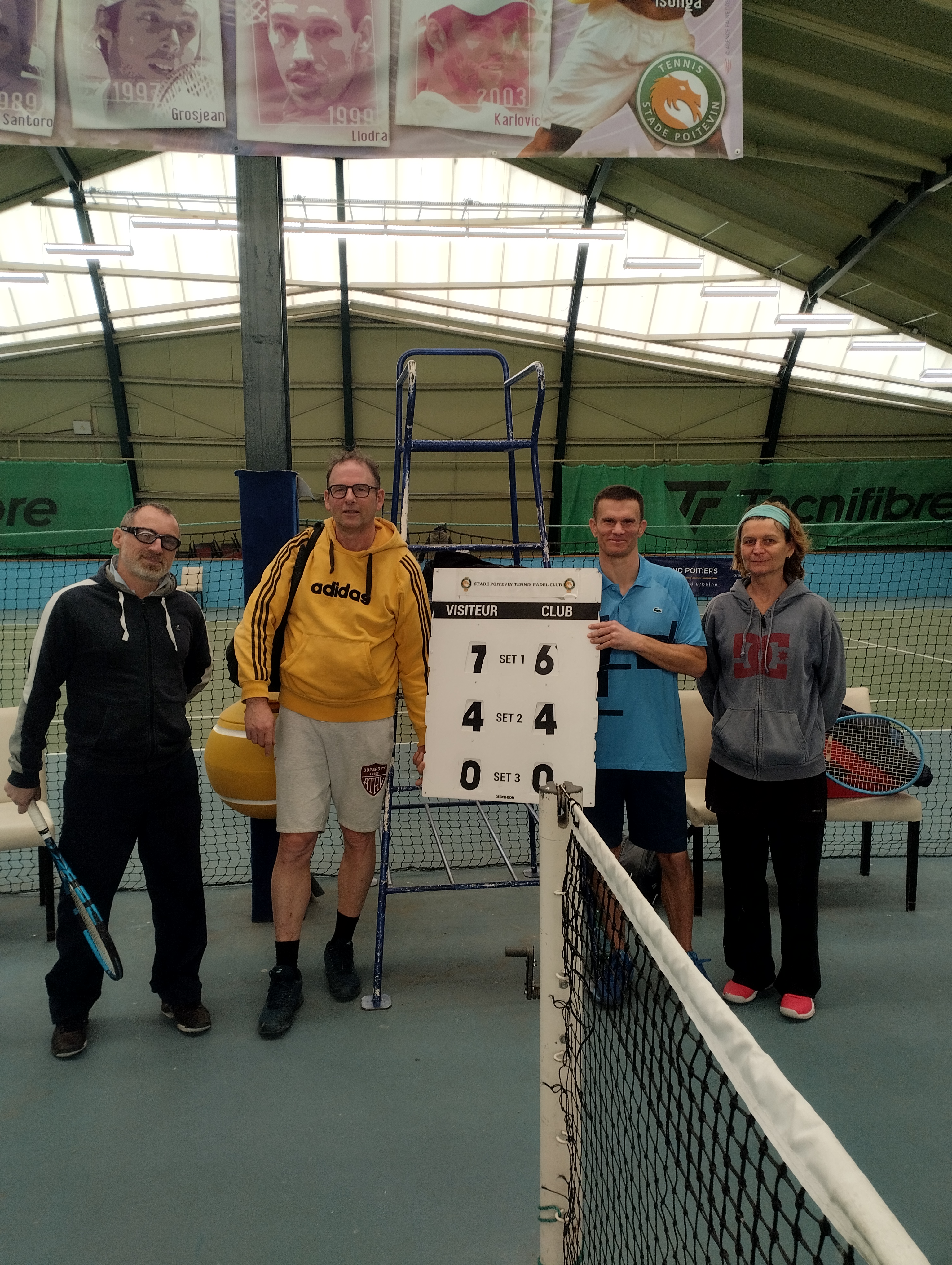 Alors que le match avait commencé à 10H , les 2 gladiateurs n’en étaient qu’à 7/6 4/4 à 12H15 ! Il a donc été sagement décidé de reporter la suite au dimanche suivant…… ce qui a permis aux adhérents Benoît Périer et Sophie Bardet qui attendaient patiemment, d’entrer enfin sur le terrain !