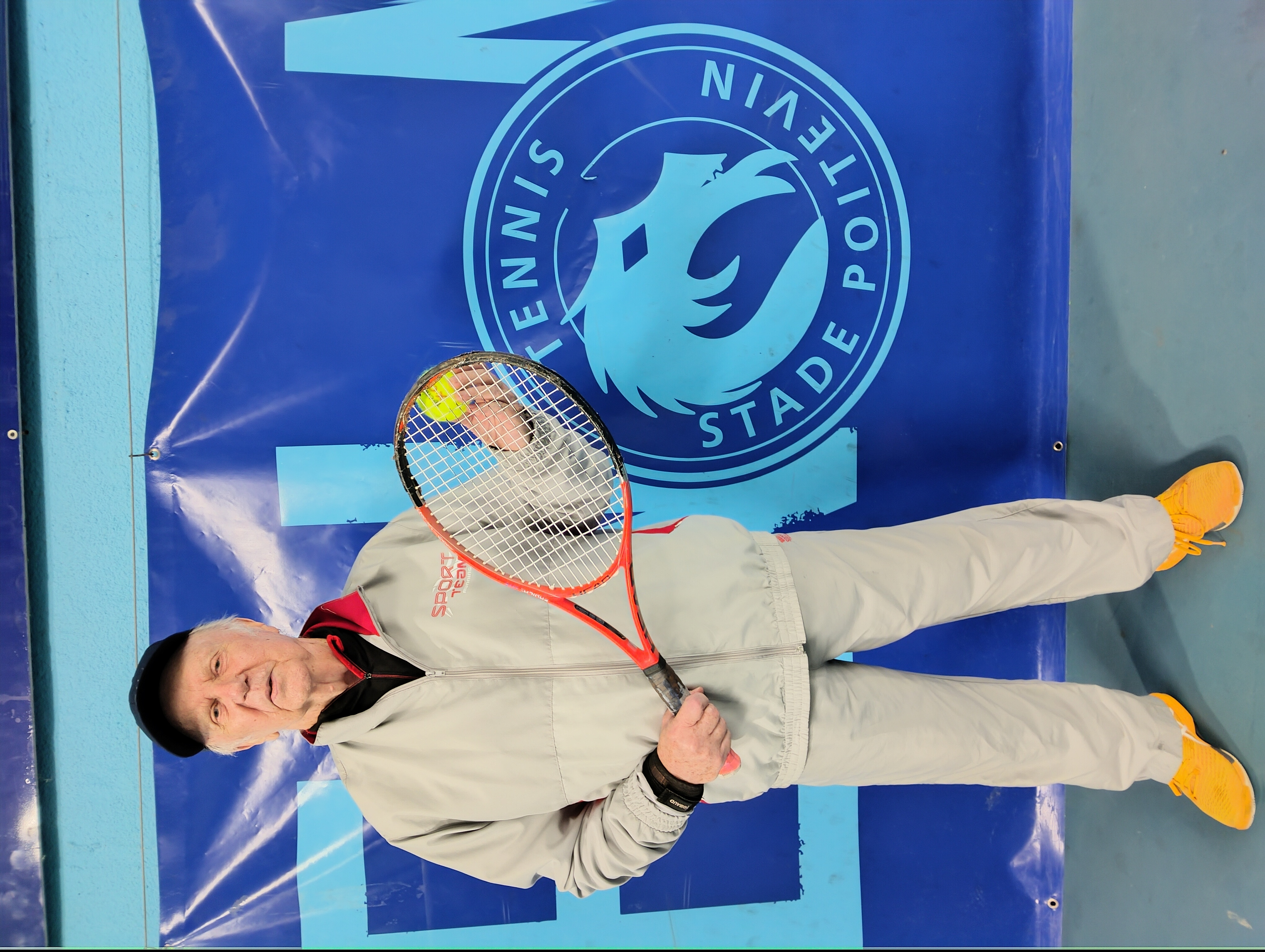 Nos glorieux Anciens, Brigitte GODFROID, Pierre GUILLON, Jean-Pierre MAYE, Philippe NICOLAS et autres Jacky BOURGUIGNON sont ridiculisés ! Un petit nouveau vient d’arriver au club depuis décembre et affiche 91 printemps ! Et ne croyez pas qu’il fait de la figuration : il joue dans les 30/2 ! Vous devriez le croiser d’autant plus facilement qu’il est un voisin, puisqu’il habite à la résidence seniors des Clématites, en face du comité. Son secret ? Il n’en a pas ! Cet ancien carreleur qui s’est mis à son compte avant de partir à la retraite … il y a 30 ans, joue depuis au tennis sans avoir jamais fait de tournois ! Nous allons essayer de l’inscrire en championnat individuel dans les + de 85 ans, nouvelle catégorie créée pour les supers seniors !!