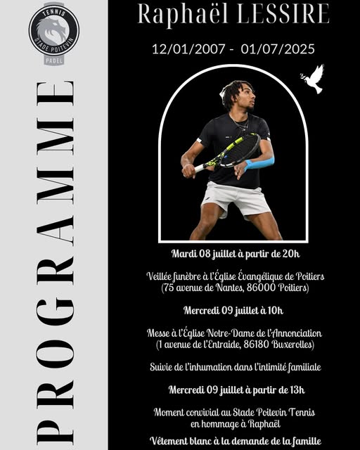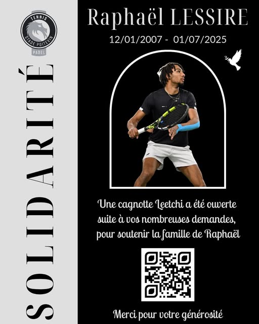 À partir de 13h : moment convivial en hommage à Raphaël au Stade Poitevin Tennis;